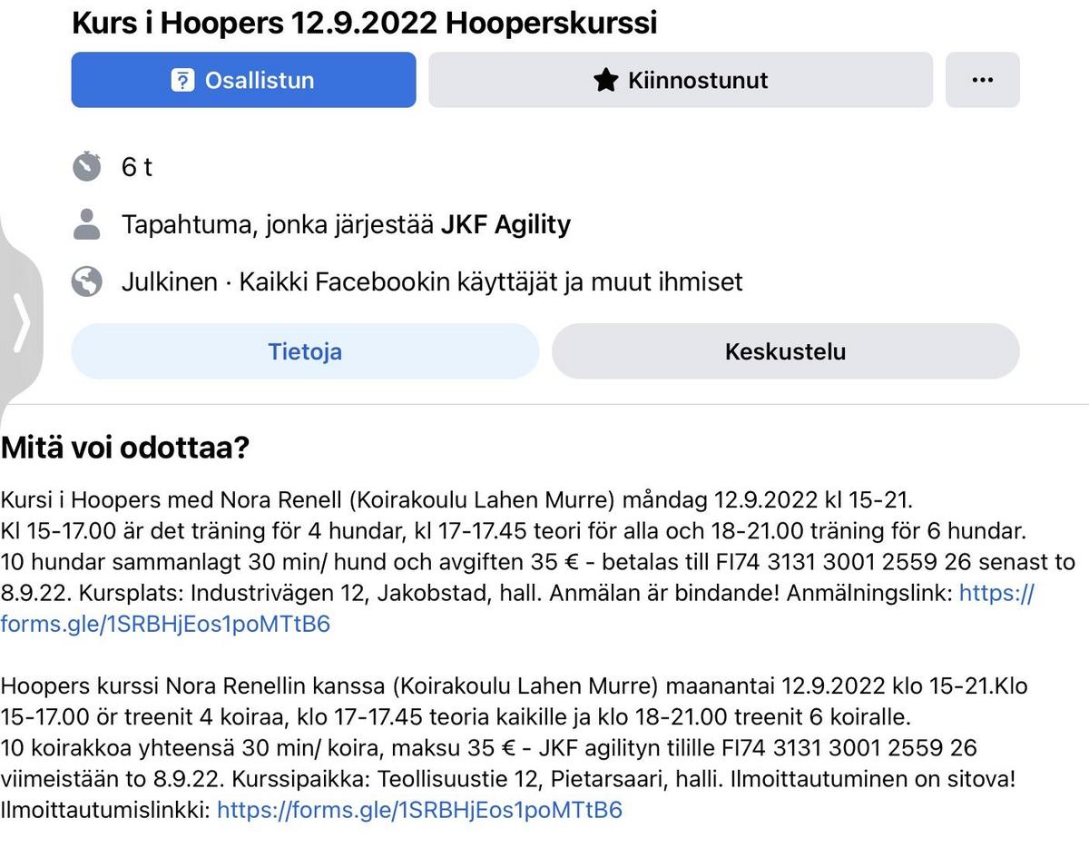 Hooperskurssi / Kurs i Hoopers